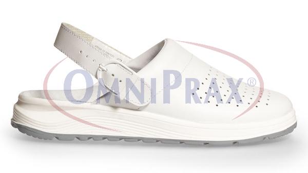 Komfortní anatomický tvar, sandál z hovězí kůže nebo z mikrovlákna, zesílená patová část, neklouzavá podrážka z PVC odolná oděru, ohybu, olejům a živočišným tukům, antistatické provedení.