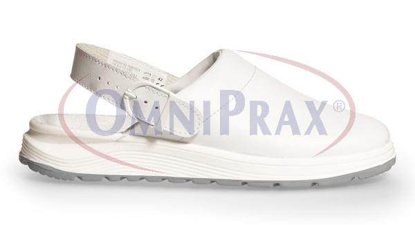 Komfortní anatomický tvar, sandál z hovězí kůže nebo z mikrovlákna, zesílená patová část, neklouzavá podrážka z PVC odolná oděru, ohybu, olejům a živočišným tukům, antistatické provedení.