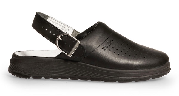 Komfortní anatomický tvar, sandál z hovězí kůže nebo z mikrovlákna, zesílená patová část, neklouzavá podrážka z PVC odolná oděru, ohybu, olejům a živočišným tukům, antistatické provedení.