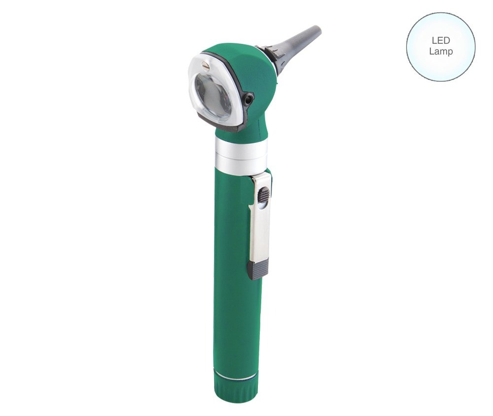 ADOTO, profesionální otoskop, LED osvětlení, lupa, plastové pouzdro, zelený