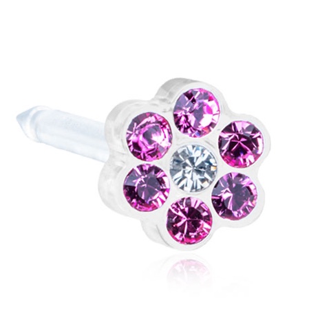 Náhradní kazeta s plastovými náušnicemi, SEDMIKRÁSKA, SVĚTLÝ RŮŽOVÝ KAMÍNEK/AMETYST, 10 ks