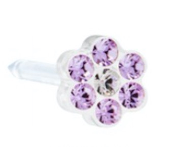 Náhradní kazeta s plastovými náušnicemi, SEDMIKRÁSKA, SVĚTLÝ RŮŽOVÝ KAMÍNEK/AMETYST, 10 ks