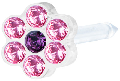 Vzorková náušnice, sedmikráska,ametyst/světlý růž.kam.,1 ks