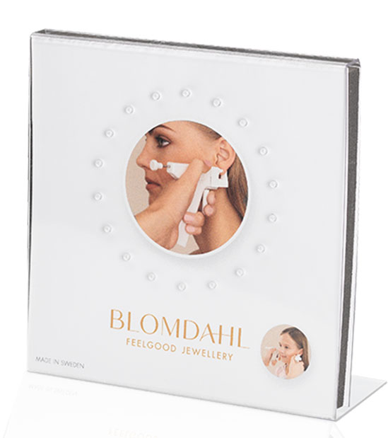 PIERCER UCHA BLOMDAHL, startovací souprava, 1 přístroj, 10 plastových náušnic krystal