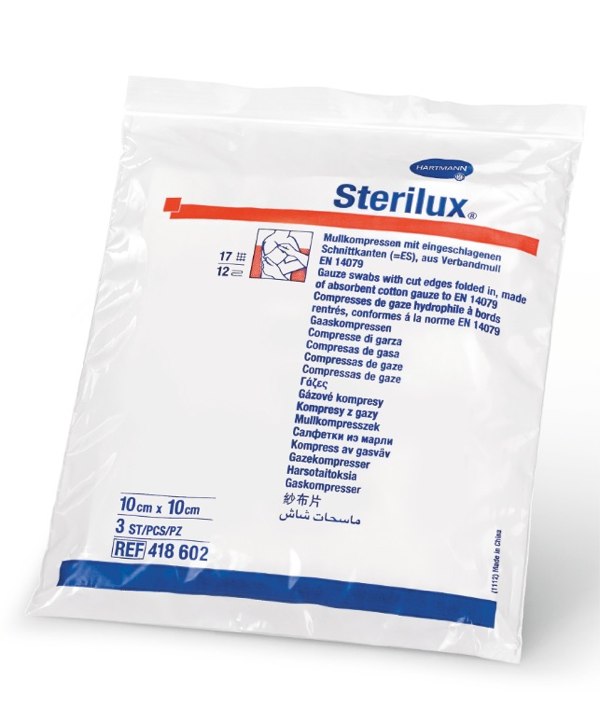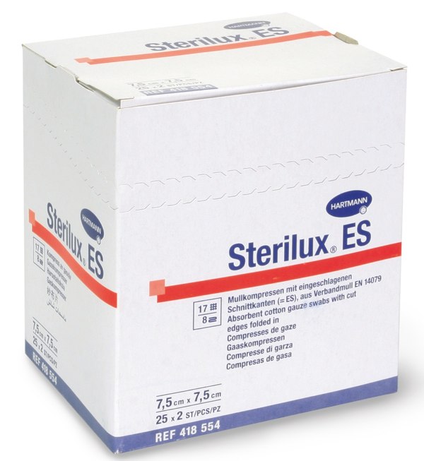 Popis: STERILUX, sterilní gázové kompresy, 100 % bavlna, 5 x 5 cm, 25 x 2 ks