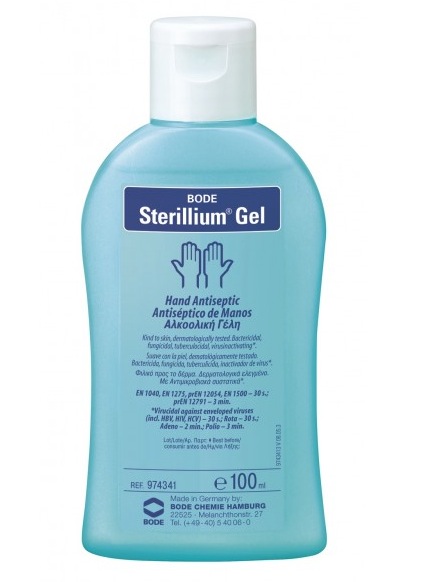 Popis: STERILLIUM GEL PURE, gelová dezinfekce rukou, lahvička, 100 ml