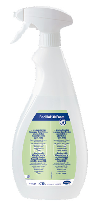 Popis: BACILLOL 30 SENSITIVE FOAM, rychlá alkoholová dezinfekce, láhev 750 ml, včetně pěnovače