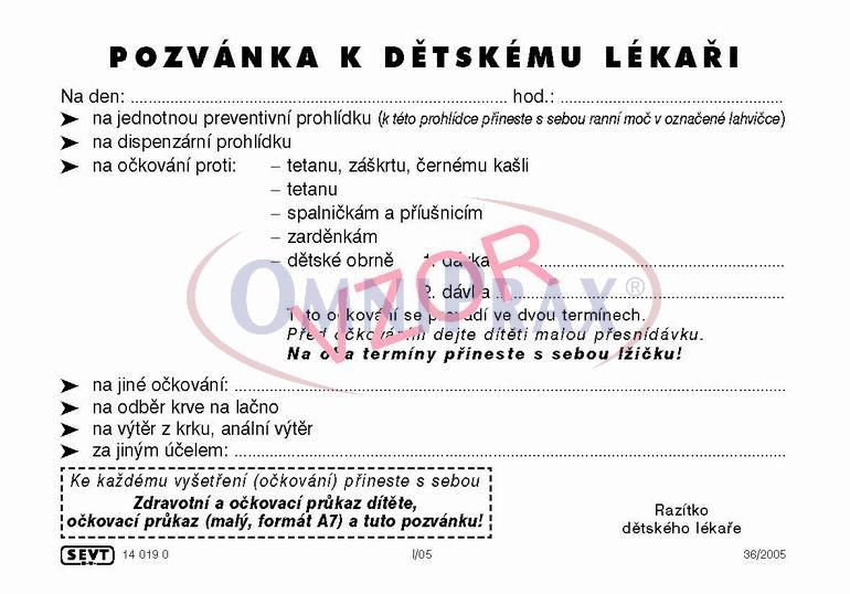 Pozvánka k dětskému lékaři, karta A6