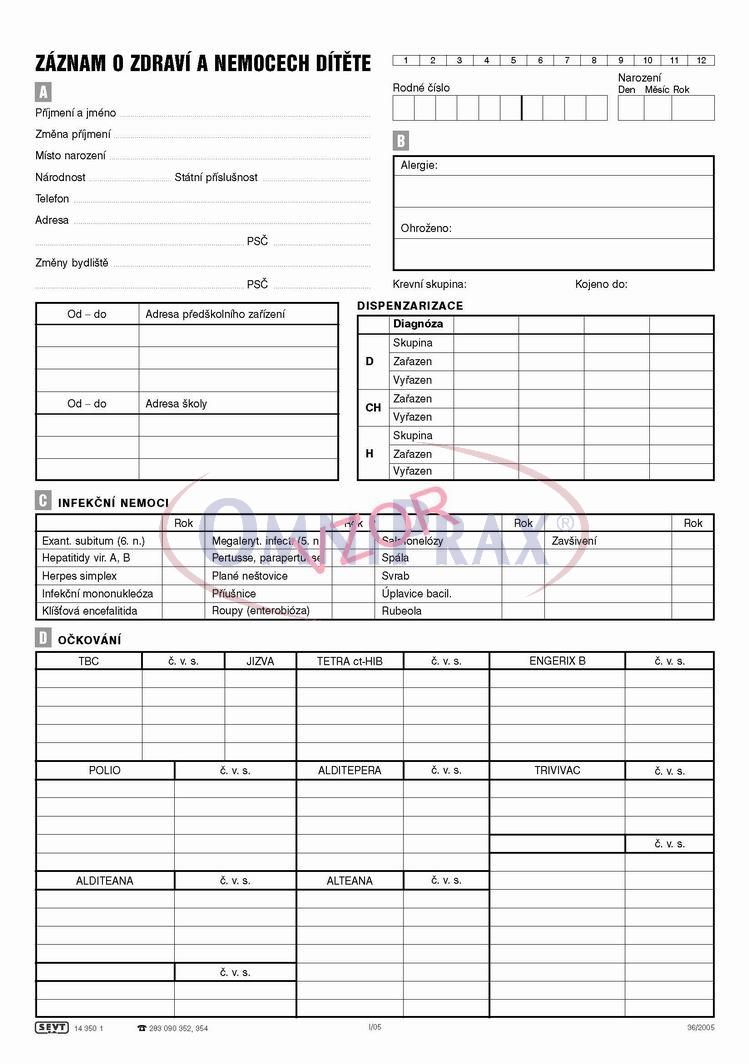 Záznam o zdraví a nemocech dítěte, 2 dvoulisty A4