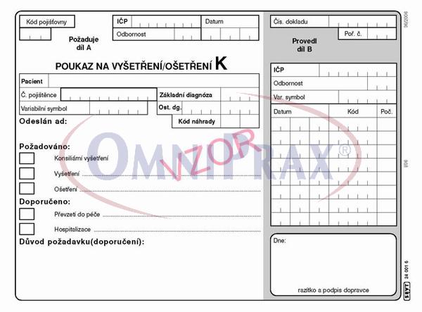 Poukaz na vyšetření - ošetření K - 06k, blok A5, 100 listů