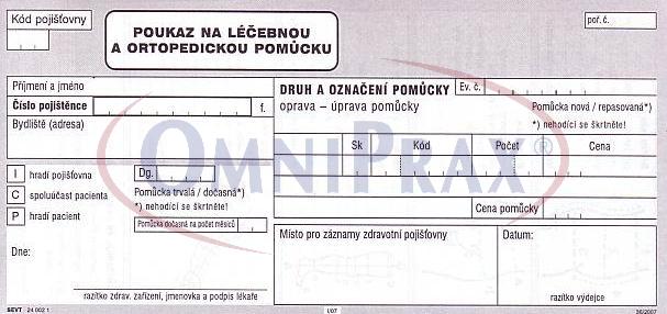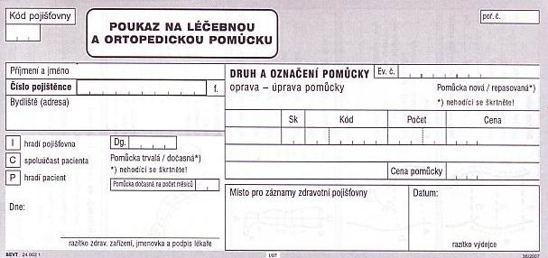 Poukaz na léčebnou a ortopedickou pomůcku - 13, volné listy 1/3 A4