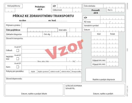 Příkaz ke zdravotnímu transportu - 34 , blok A5, 2 x 50 listů