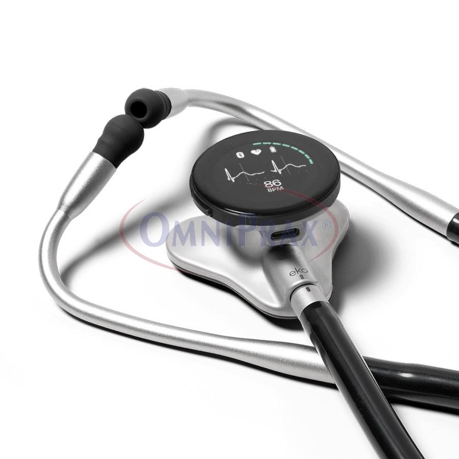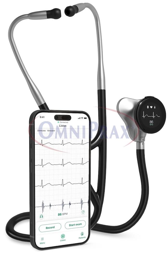 Inovativní digitální stetoskop vyvinutý speciálně pro klinickou praxi, první pomoc a veterinární lékařství. S nejmodernější technologií TrueSound poskytuje stetoskop mimořádně čistou kvalitu zvuku a až 40násobné zesílení; tím je zajištěna přesná auskultace i v hlučném prostředí. Aktivní 8násobné potlačení hluku umožňuje detekci fibrilace, šelestů a dalších poruch rytmu během několika sekund. Barevný displej s vysokým rozlišením zobrazuje jednokanálovou křivku EKG v reálném čase, srdeční frekvenci a další údaje. Srdeční onemocnění jako např. šelest nebo fibrilaci lze tak diagnostikovat rychleji.