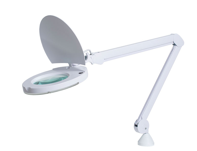 LUPA LED H.F., vyšetřovací lampa s lupou, osvětlení LED diodami, svorka na stůl