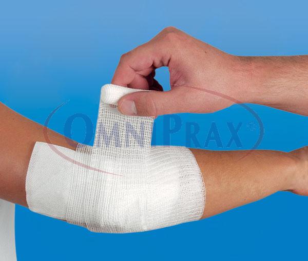 Bílé fixační obinadlo obsahuje 40 % polyamidu, je podélně natažitelné a příčně eleastické.