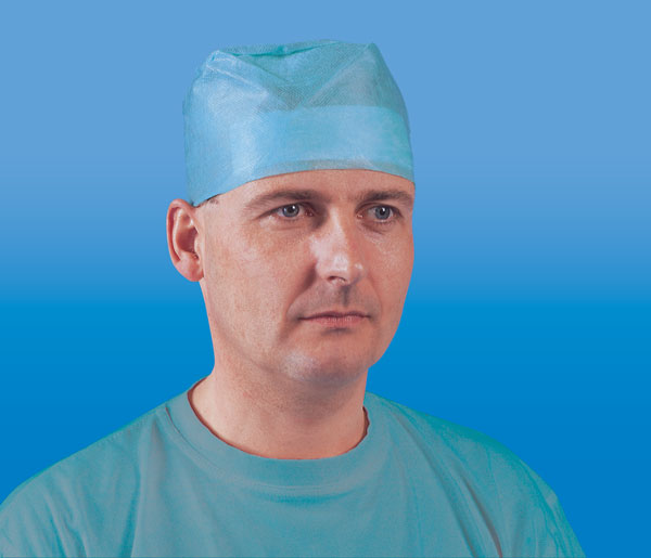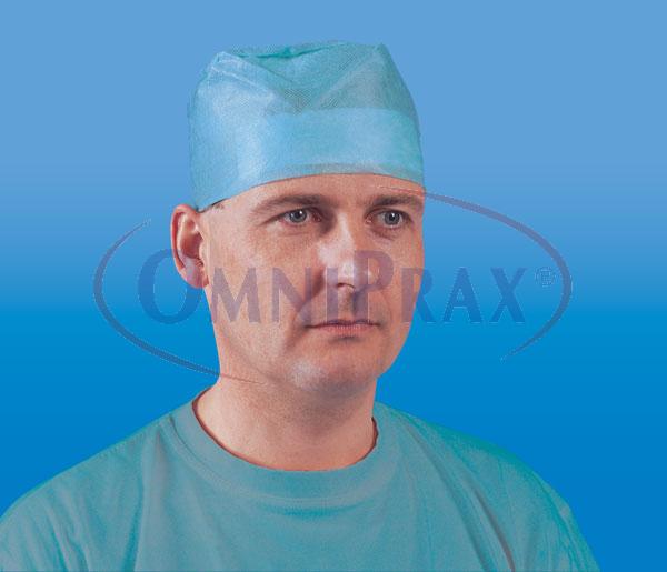 Sesterská čepice, dobře prodyšná, tvar loďky, zelená barva.