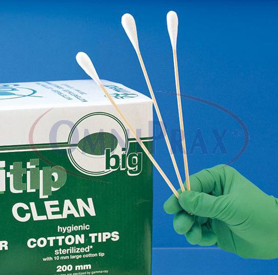 Nesterilní, klinicky čisté vatové tyčinky.