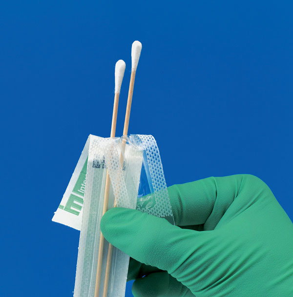 Sterilní vatové tyčinky se používají pro výtěry a odebírání materiálu ke kultivačním vyšetřením.