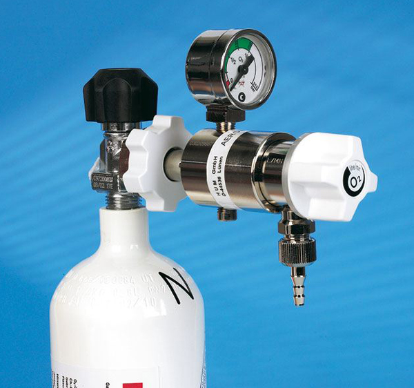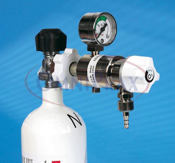 Připojuje se na kyslíkovou láhev. Lze jej nastavit na průtok od 1 do 15 litrů kyslíku za minutu.