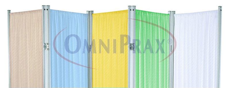 Konstrukce z eloxovaného hliníku, závěs ze speciální lehce umyvatelné a nehořlavé látky.