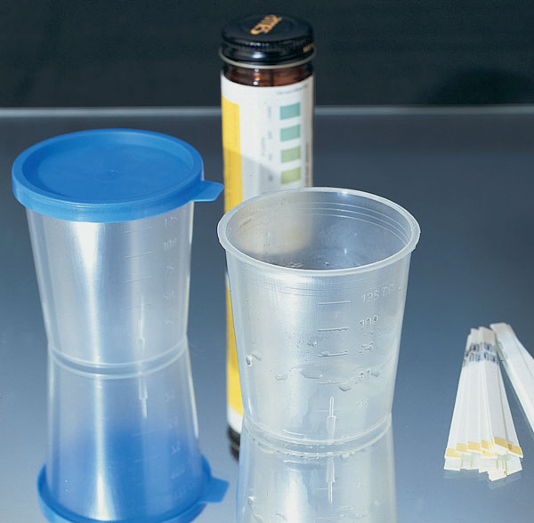 Kelímek na biologický materiál má objem 125 ml, je nerozbitný, graduovaný a popisovatelný.