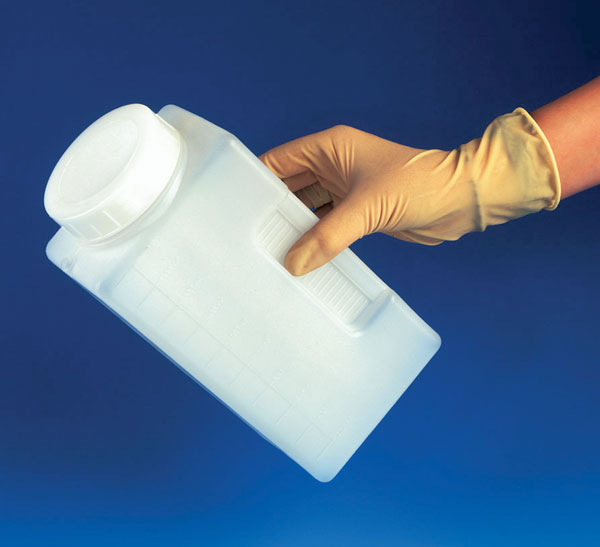 Nádoba ke sběru moči, objem 2 litry, graduovaná, s místem pro popis.