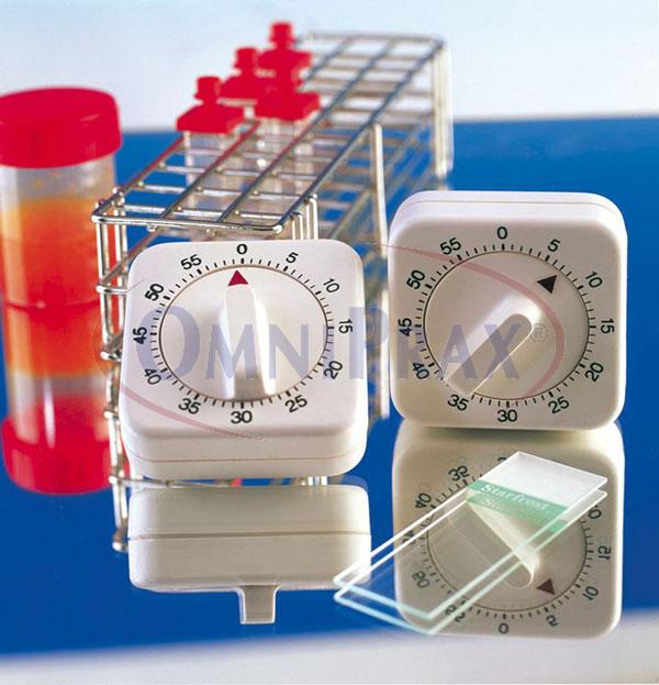 Mechanický laboratorní minutovník je nastavitelný na max. 60 minut.