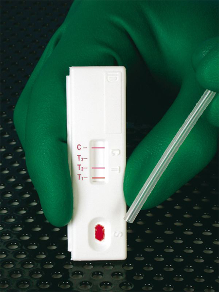 Všechny potřebné součástí testu jsou v balení. Krev se odebírá běžnou lancetou z bříška prstu. Test není nutno uchovávat v ledničce, exspirační doba je dlouhá.