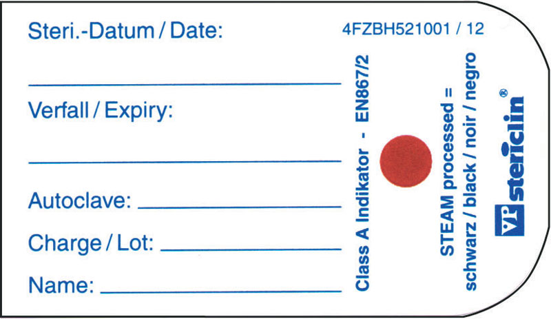Indikátor se popíše a nalepí na box s pomůckami, které se sterilizují v autoklávu.
