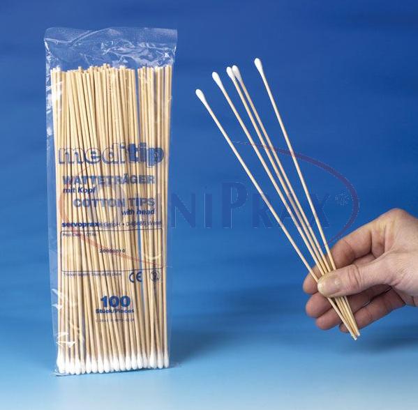 OMNITIP, nesterilní vatové tyčinky, špejle, hlavička 4 mm, délka 230 mm, 10 x 100 ks |