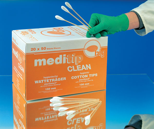 OMNITIP, nesterilní vatové tyčinky, špejle, hlavička 10 mm, délka 150 mm, 20 x 50 ks |
