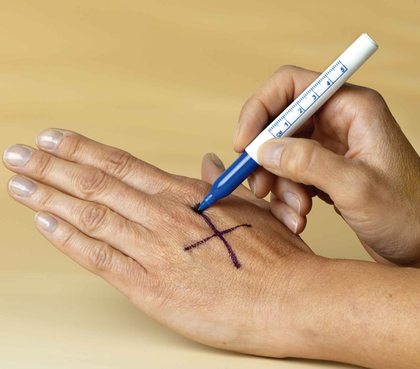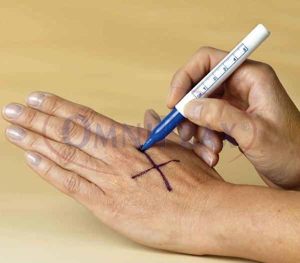 Sterilní popisovač operačního pole, umyvatelný, modrá barva.