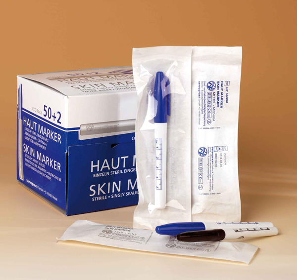 Sterilní popisovač operačního pole, modrá barva, středně silná čára
