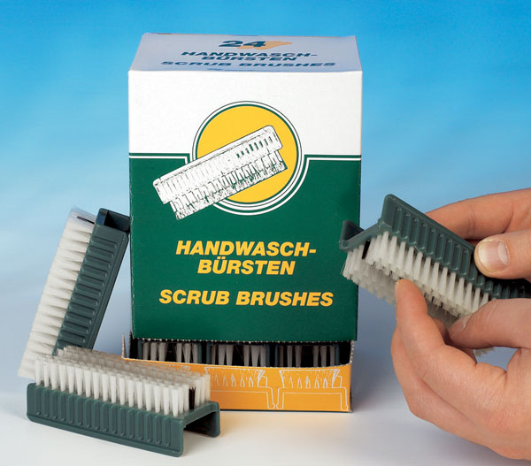 Opakovaně použitelný kartáček pro čištění rukou operatéra před chirurgickým výkonem, malými zákroky, apod.