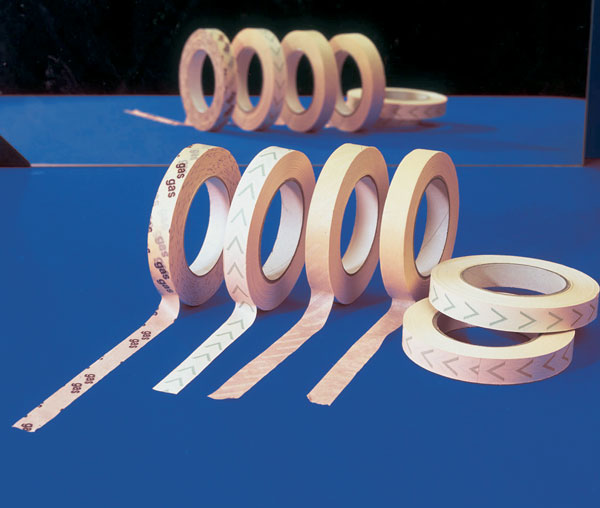 Samolepicí pásky se po sterilizaci zabarví a slouží ke kontrole úspěšné sterilizace.
