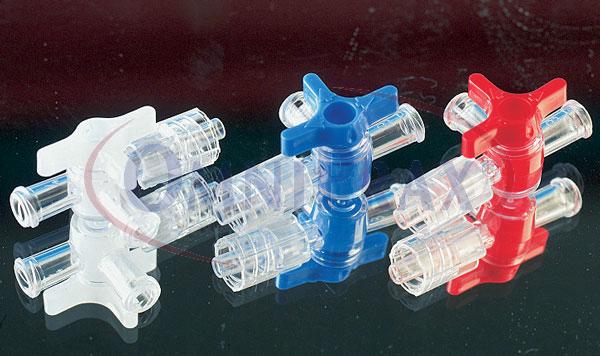Sterilní kohout pro současnou aplikaci infúze a monitorování.