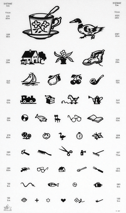 Jsou určeny pro ambulance s dostatečným osvětlením. Vyšetřovací vzdálenost je 5 nebo 6 m.