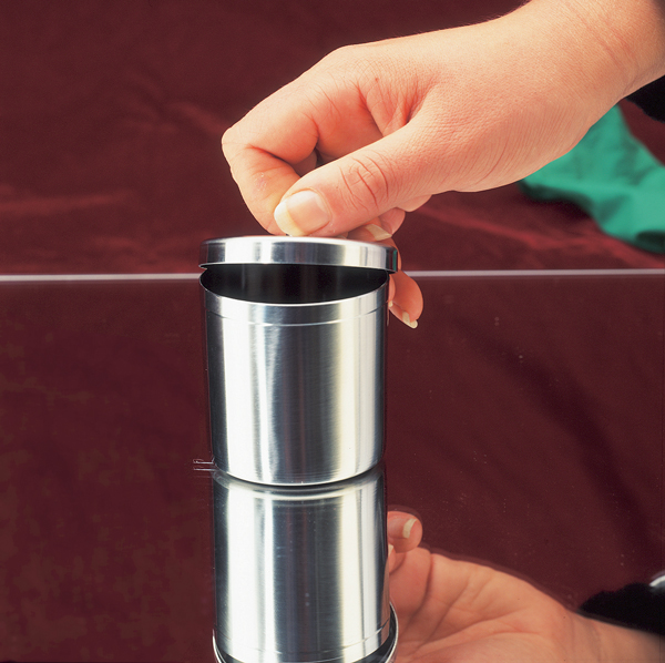 Nádoba na krytí z kvalitní nerez oceli se použivá jako zásobník na krytí, čtverečky, polštářky a další materiál ve všech oborech medicíny.