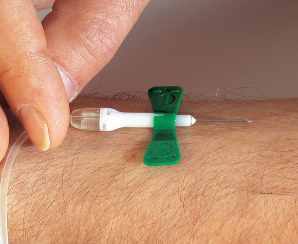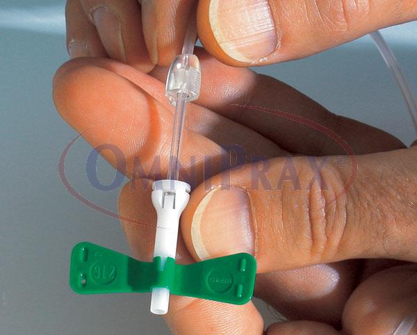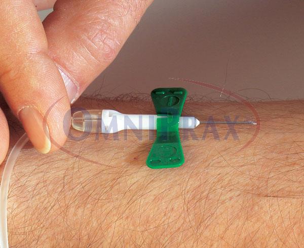 Vylučuje možnost zranění personálu infekční jehlou. Venepunkce se provádí běžným způsobem. Při vytažení jehly z žíly se stiskne boční pružná část, jehla zajede bezpečně do ochranné trubičky, ze které není možno ji vytáhnout.