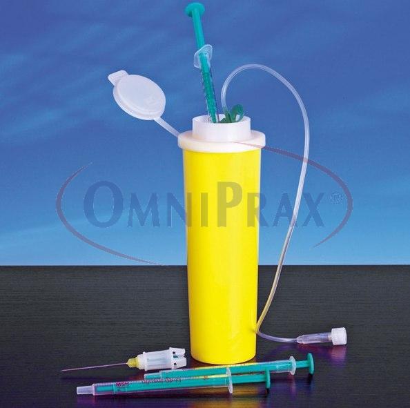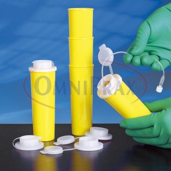 Objem 150 ml, výška 130 mm, nádoba je vhodná pro stříkačky i jehly.