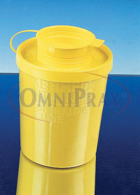 Model 2 - objem 500 ml, výška 10,7 cm, průměr dole 7,5 cm, průměr nahoře 9,0 cm, nádoba je vhodná pro jehly, barva víka i nádoby žlutá.