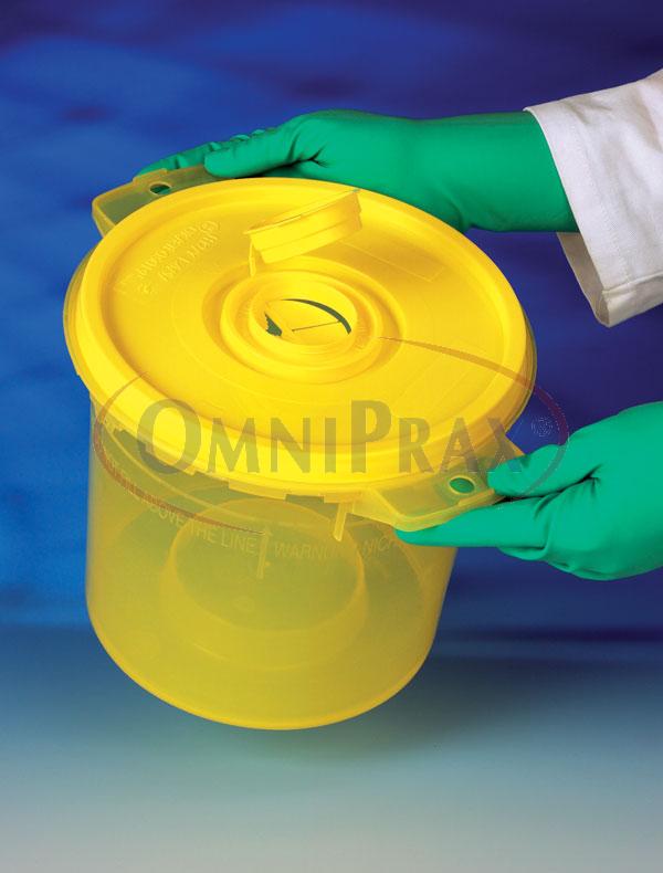 Model 6 - objem 5000 ml, výška 195 mm, průměr nahoře 200 mm. Nádoba je vhodná pro jehly i stříkačky.