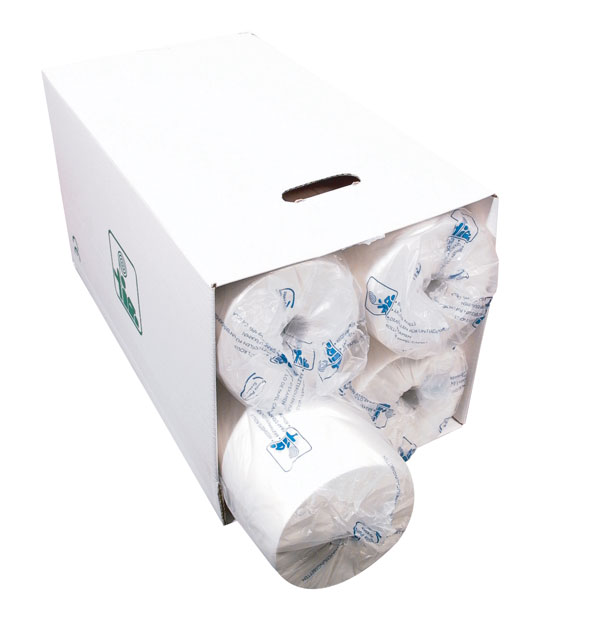 Dvě vrstvy kvalitního bílého papíru (hmotnost 40 g/m2), délka 150 m, perforace po 38 cm.