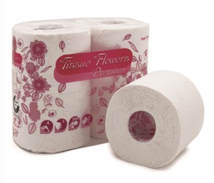 FLOWERS, toaletní papír, s vůní, 3 vrstvy, 300 útržků, délka 33 m, 4 role