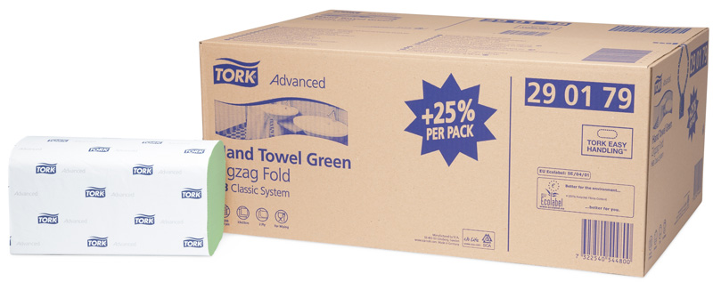 Skládané ručníky, recykl, 2 vrstvy, zelená barva, 3750 ks